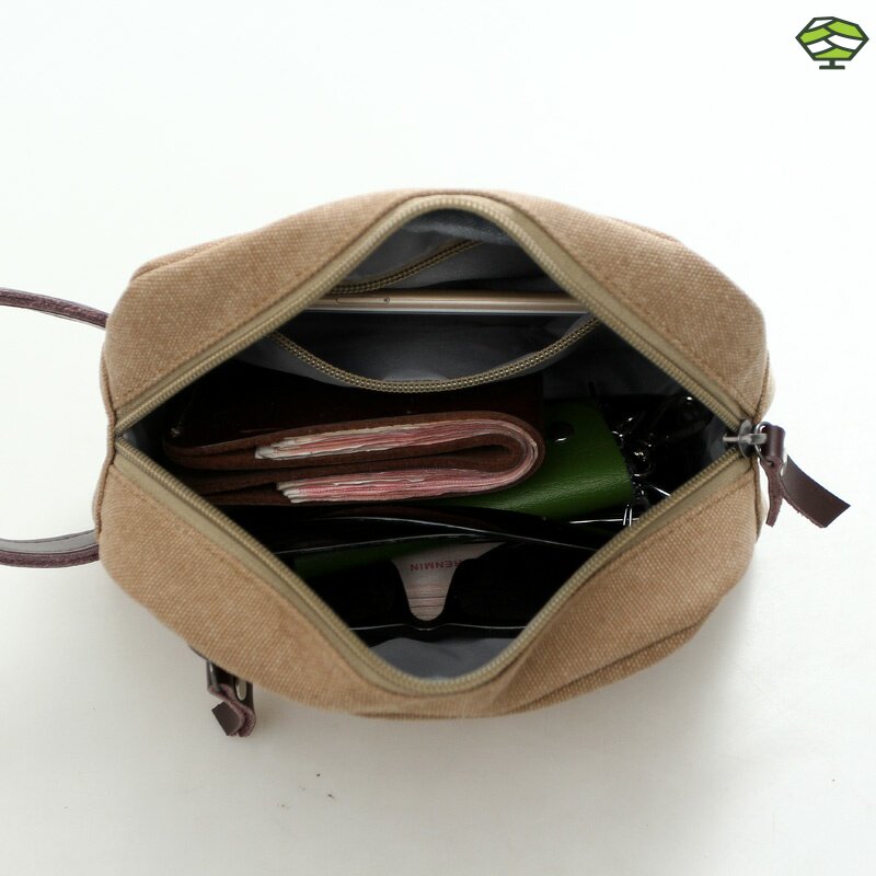 丈夫なナイロンキャンバス生地と本革の持ち手が調和した実用的なサコッシュです。 コンパクトながら財布や小物をしっかり収納できる十分な容量を確保しています。 フロントには便利なファスナーポケットを配置し、使い勝手を追求しました。 日常使いから旅行まで幅広いシーンで活躍する機能的なデザインが魅力です。 軽量で持ち運びやすく、長くご愛用いただける耐久性を兼ね備えています。