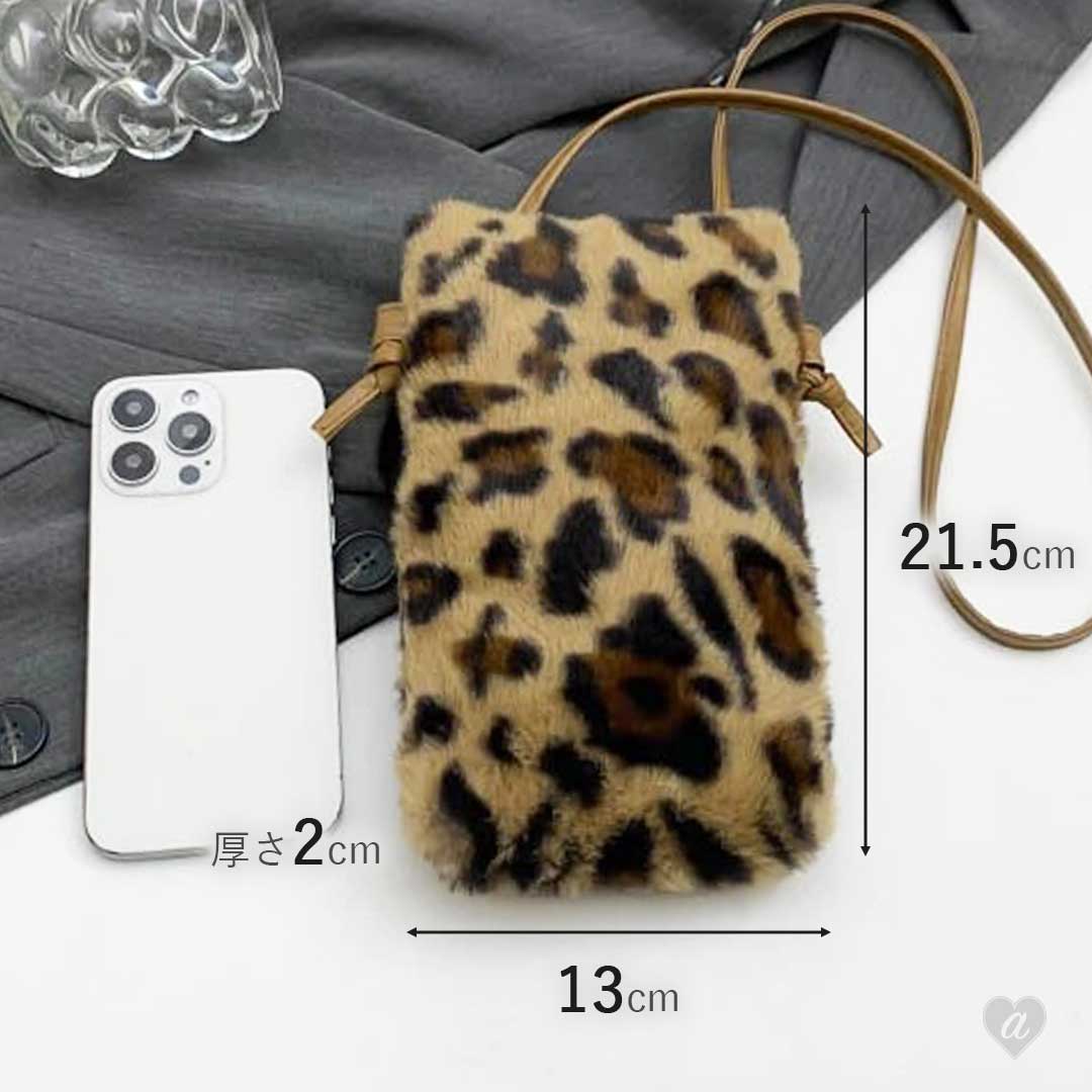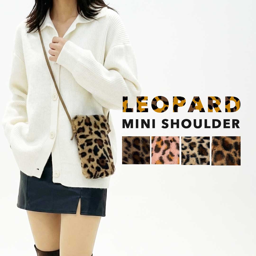 ふわっと可愛いレオパード柄のナイロン製ミニサコッシュ。