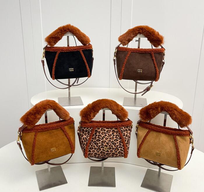 温かみのあるファー付きハンドルと豹柄デザインが魅力的で、斜めがけや手提げの両方で使える2way仕様。