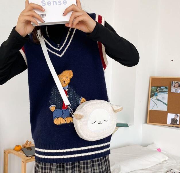 可愛い動物顔のナイロン製サコッシュです。