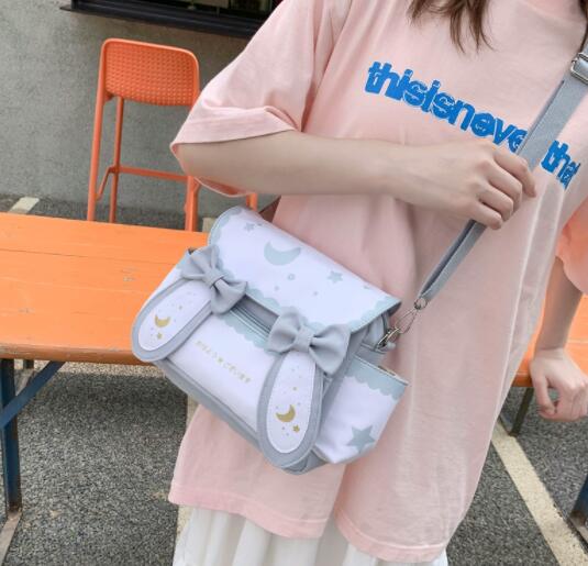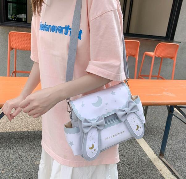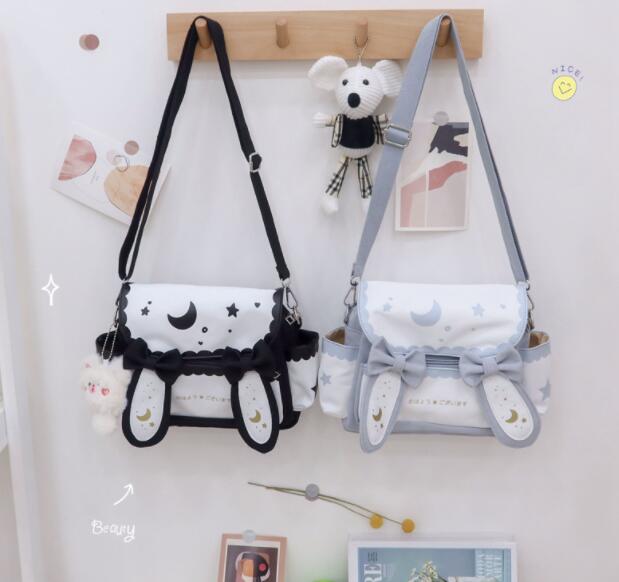 可愛い月と星の柄が印象的な帆布素材のショルダーバッグです。