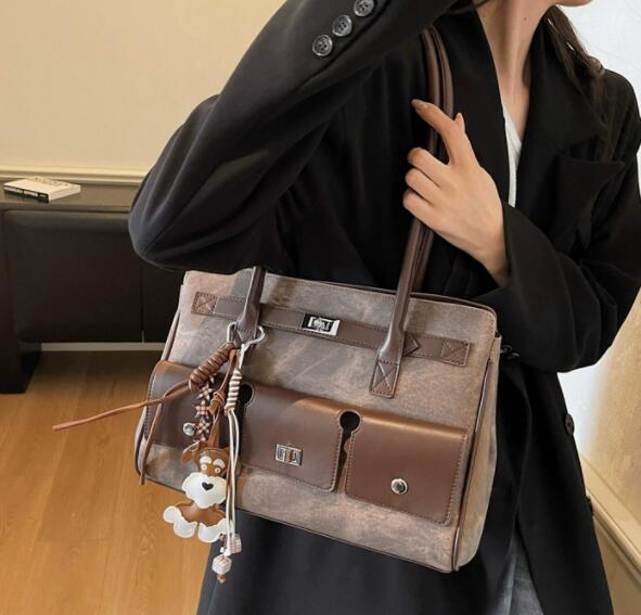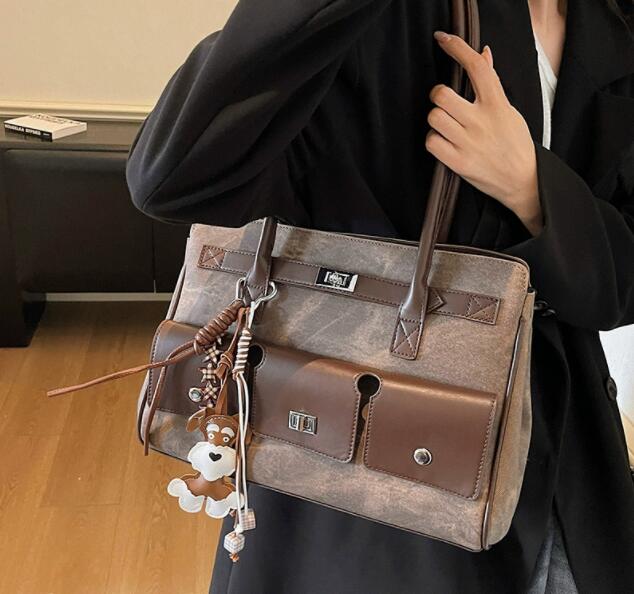 前面のポケットデザインが収納力を高め、可愛いチャーム付きでおしゃれ度もアップ。