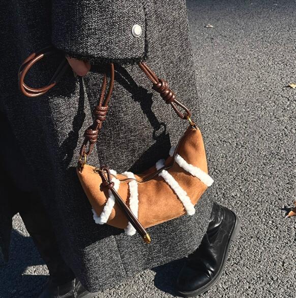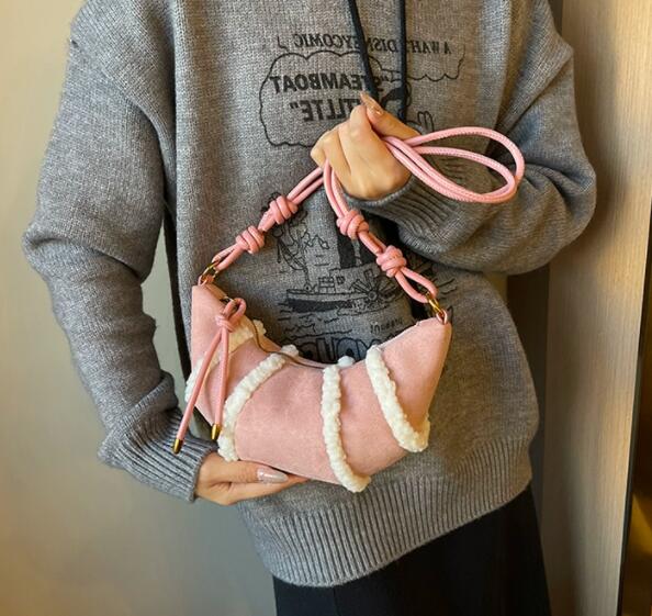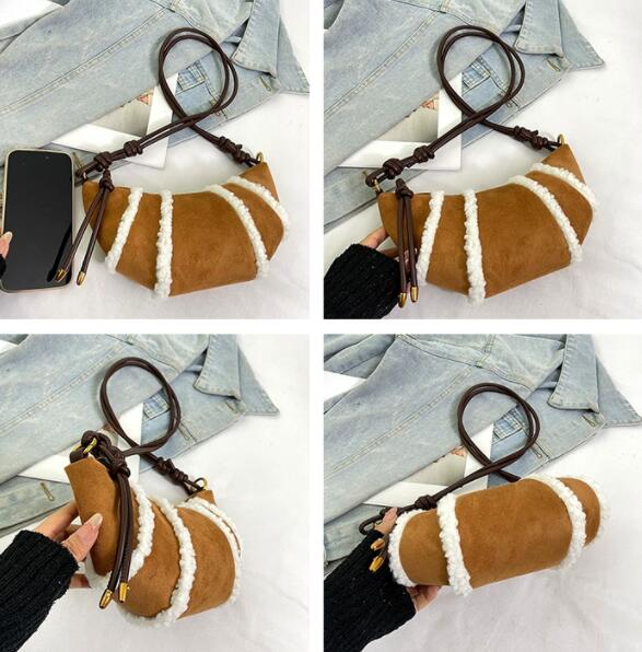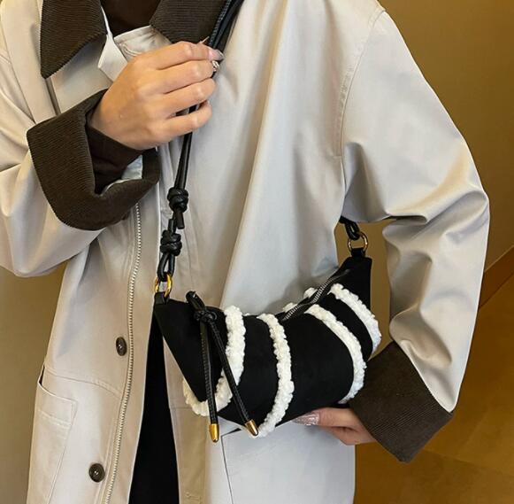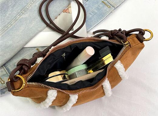 温かみのあるボア素材とナイロンを組み合わせたおしゃれなサコッシュです。