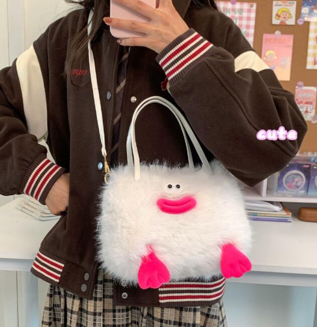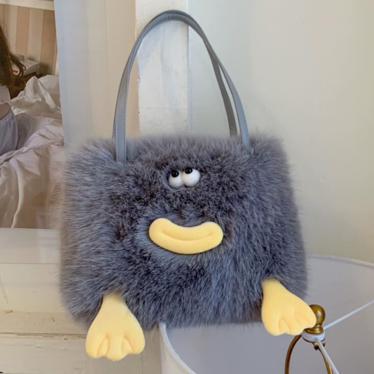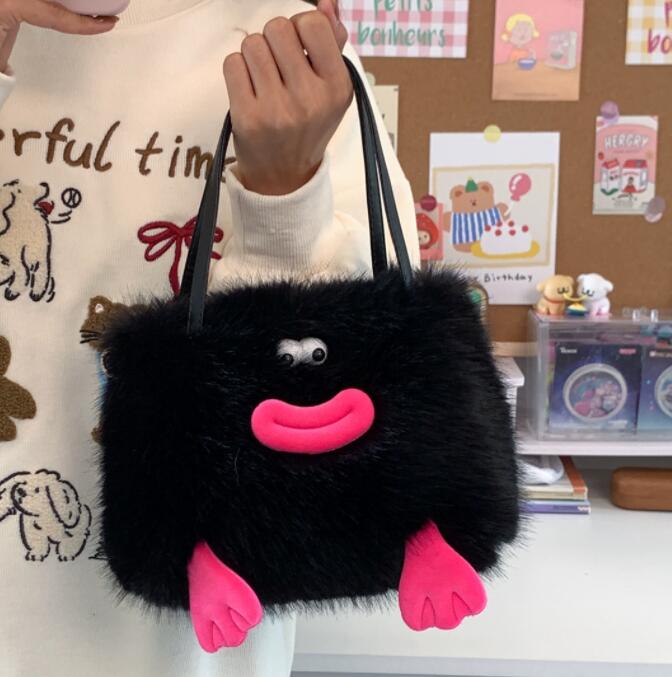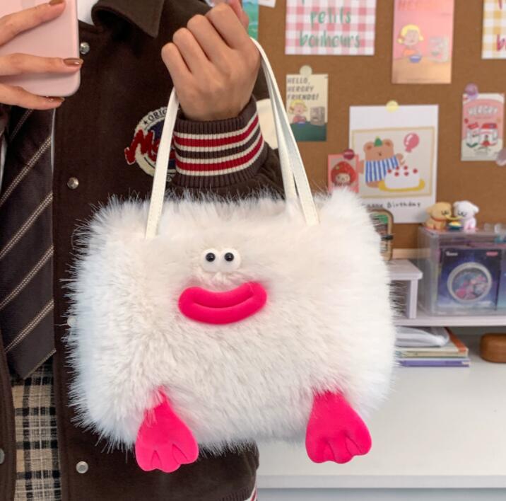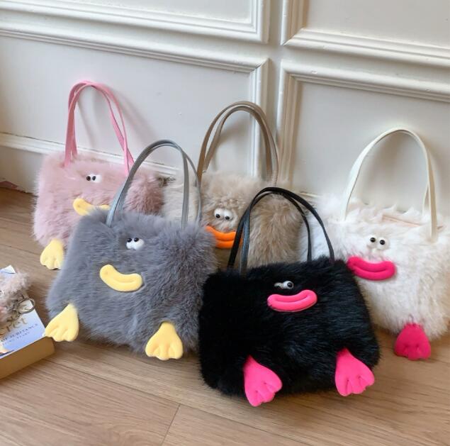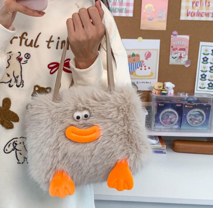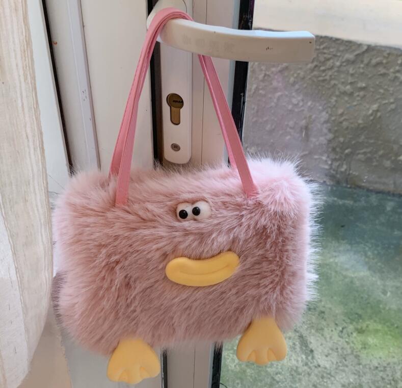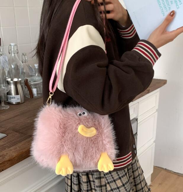 ふわふわの毛足が特徴的で、カラフルな手足がアクセントになっています。
