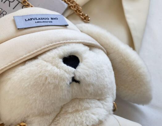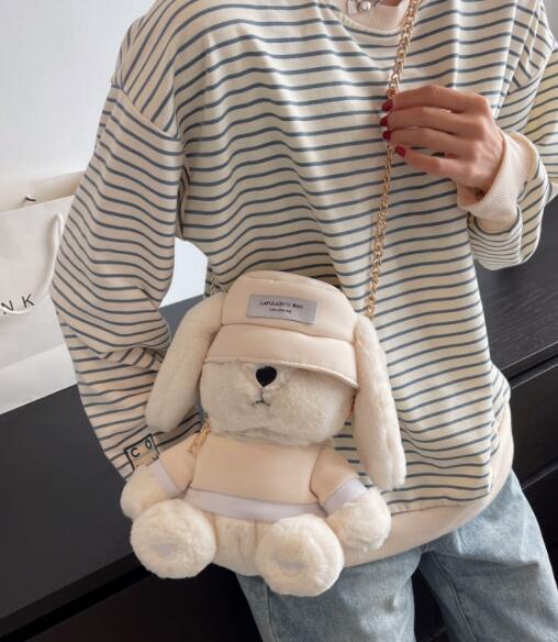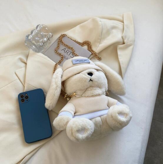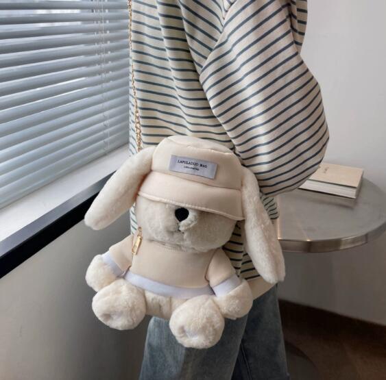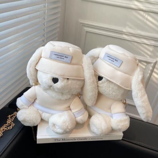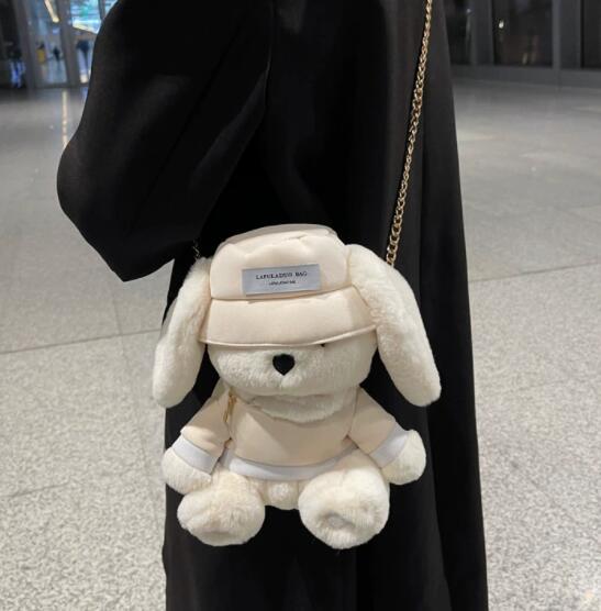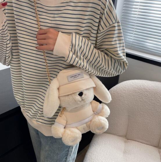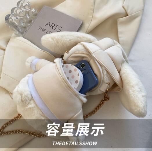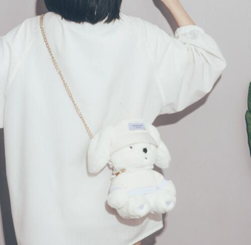 可愛いうさぎのぬいぐるみがそのままバッグになった、ナイロン素材のサコッシュです。