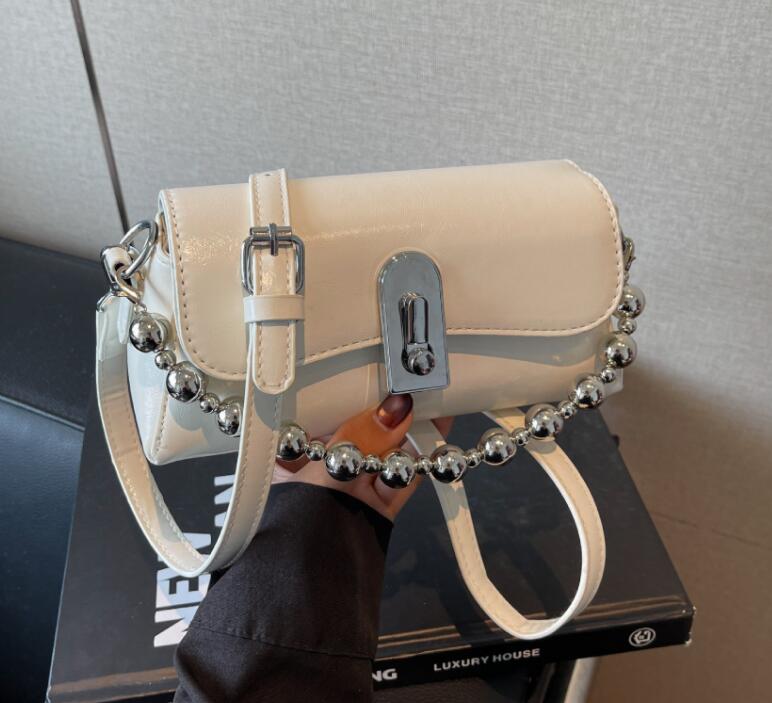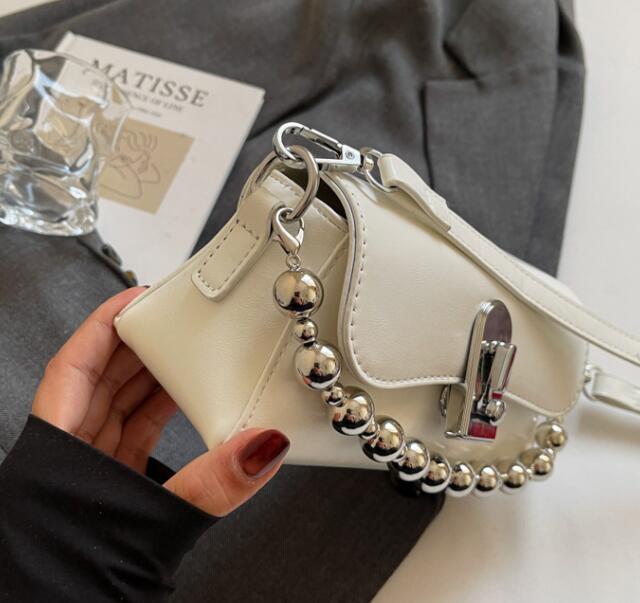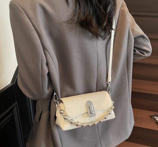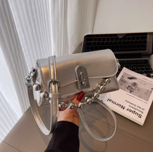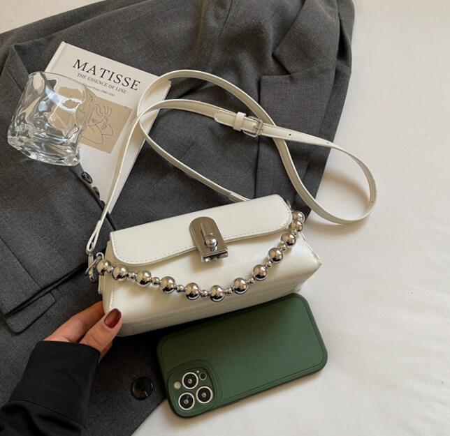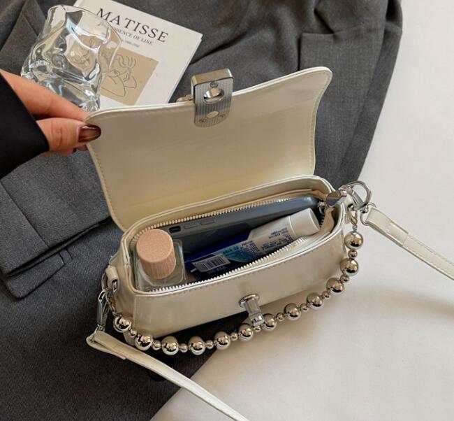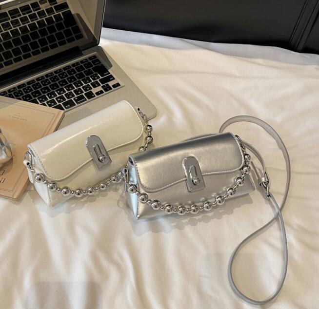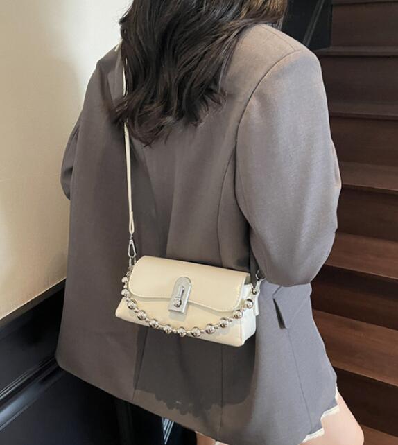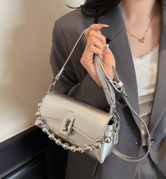 金属チェーンとストラップの2ウェイ仕様で、手提げから斜めがけまで自由自在。