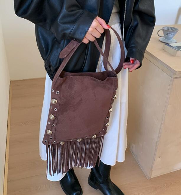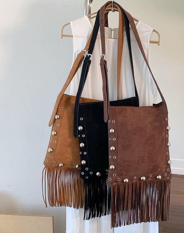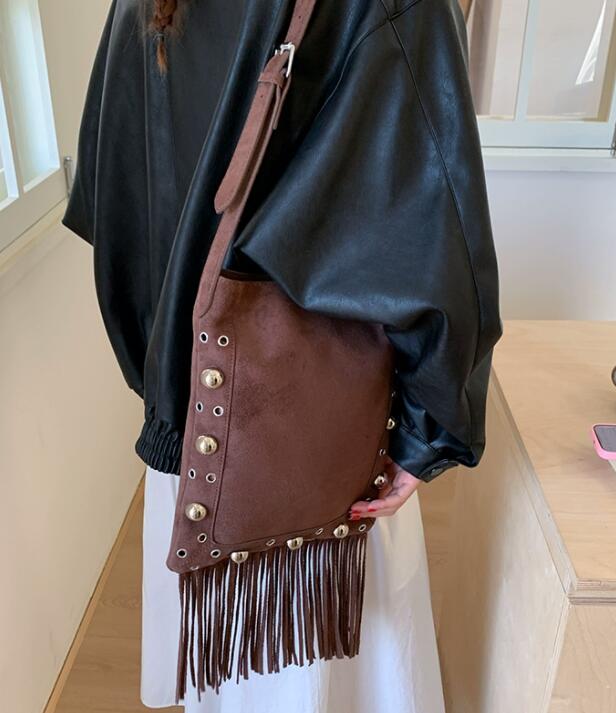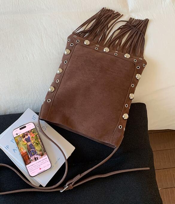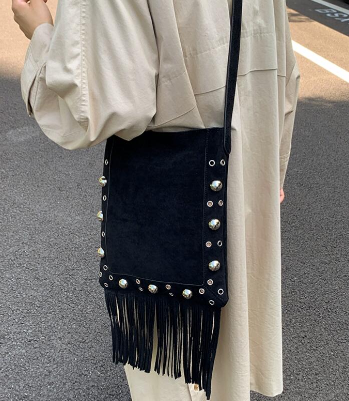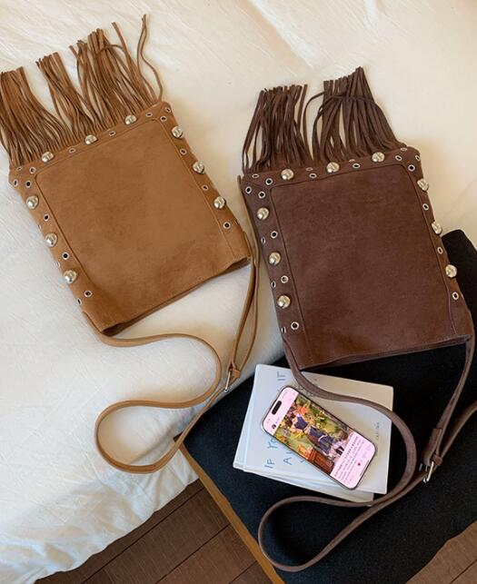 スタッズとフリンジがアクセントのおしゃれなナイロン製サコッシュです。